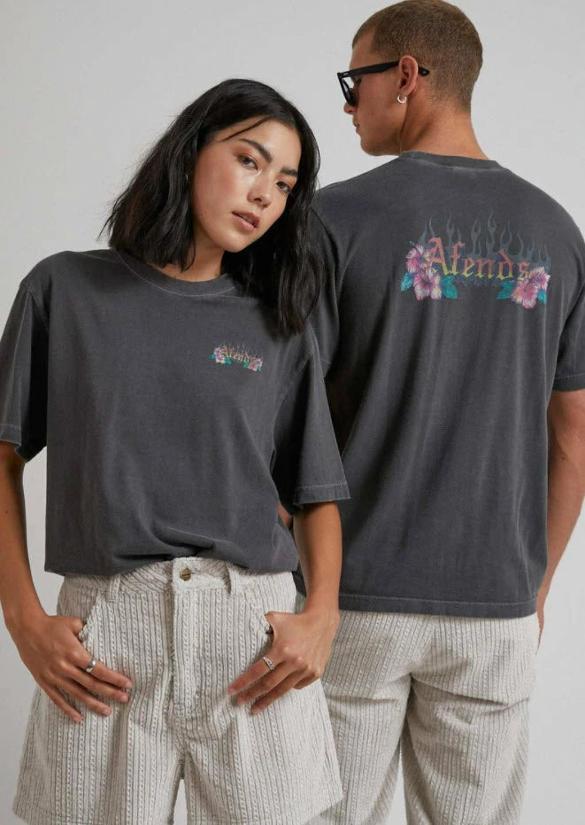 Afends Unisex Powerlines Retro Fit Tee Stone Black M204001
