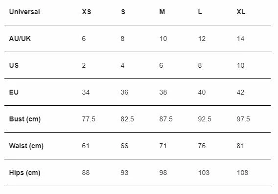 Our studio model Jenaya wears a size S / AU 8 / US 4