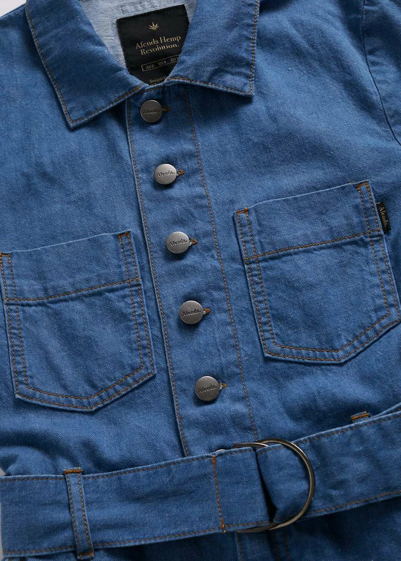 Afends Voodoo Child Hemp Chambray Hemp Playsuit Washed Indigo