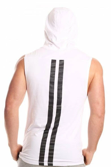 Light weight hooded T-shirt with front chest graphic, back stripe detail