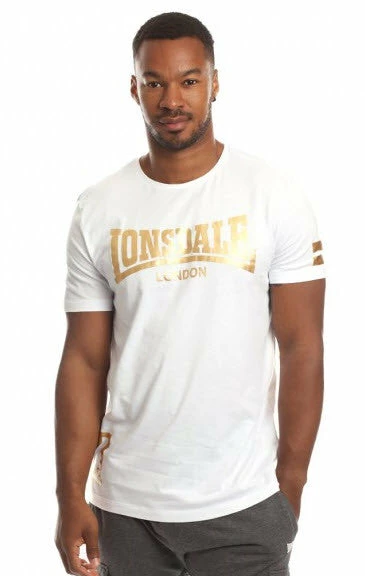 Crew neck T-shirt with front Lonsdale logo, back stripe details at back hem and sleeve in regular fit