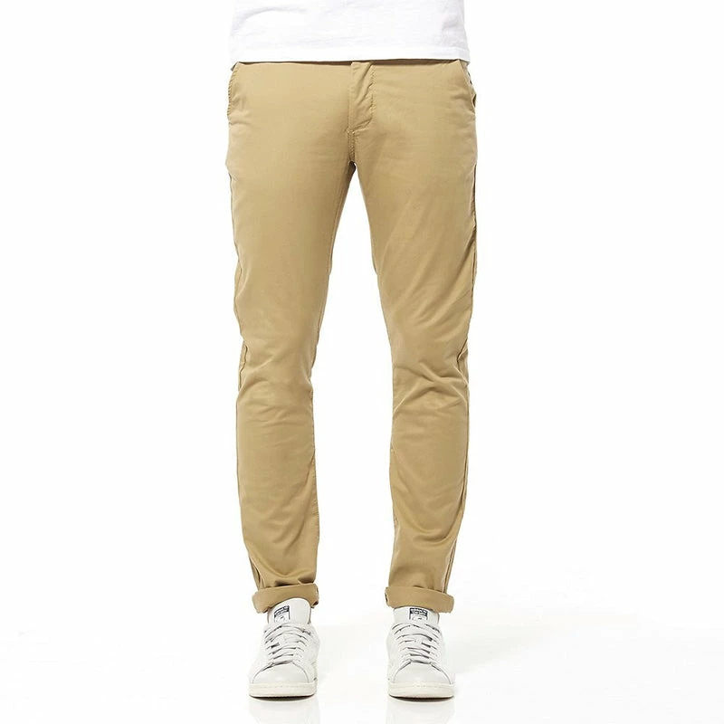 Built to last the throws of your weekend! Our chino is slim through the waist and thigh, featuring a narrow hem that looks best when cuffed. In a light camel colourway and comfort stretch cotton twill these certainly aren’t your dad’s chinos
