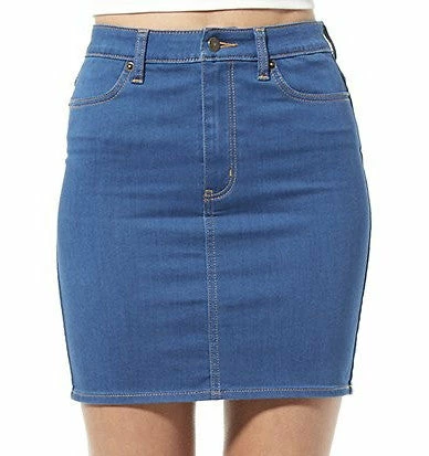 Reach dizzying heights, in the perfect high-waisted skirt. With an ultra-high waist this skirt skims the thigh and features in a bright blue wash with retro trims.