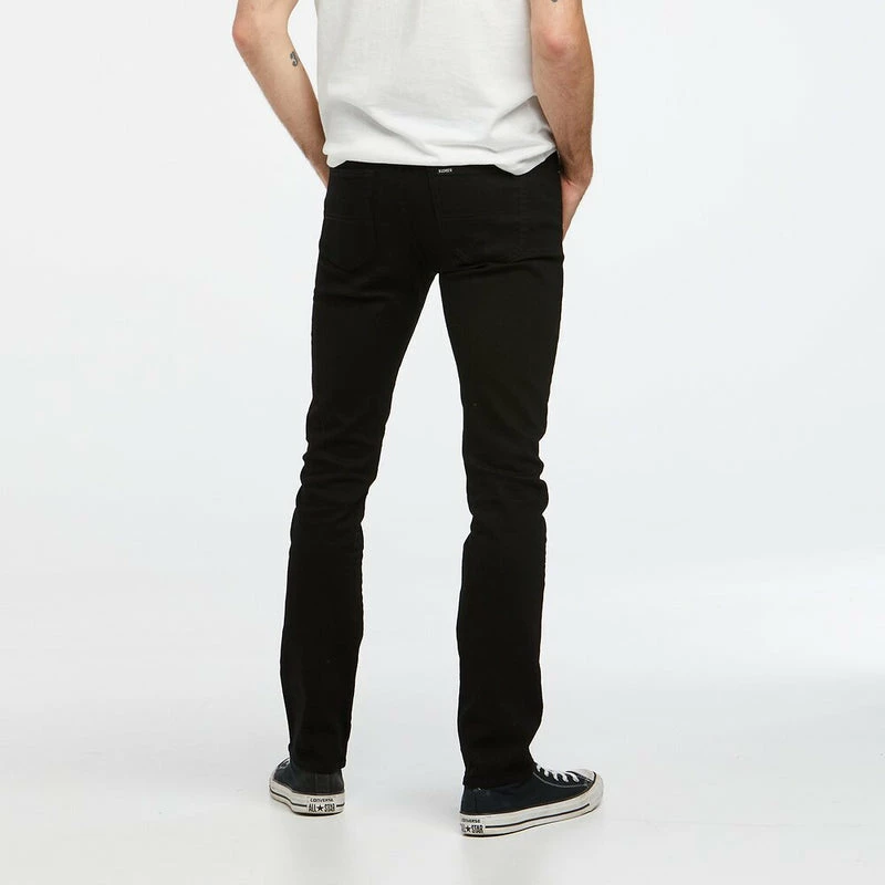 Our R1 Skinny is relaxed on the waist and fitted through the leg down to the ankle in a classic black wash. A true skinny with street cred.