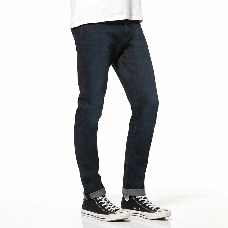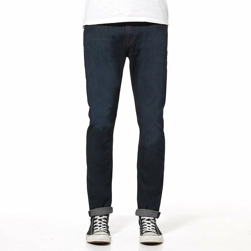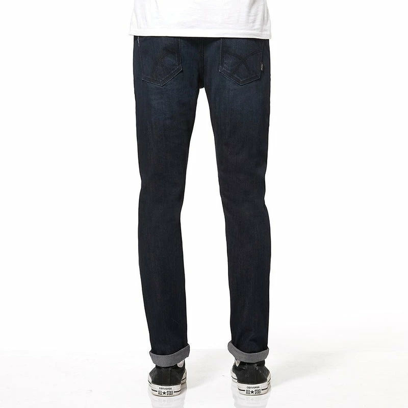 The R3 Straight Slim is an easy relaxed fit through the waist and thigh with a straight leg to the hem that is slightly narrower than our standard R3 straight. It features a dark blue wash with matching stitching.