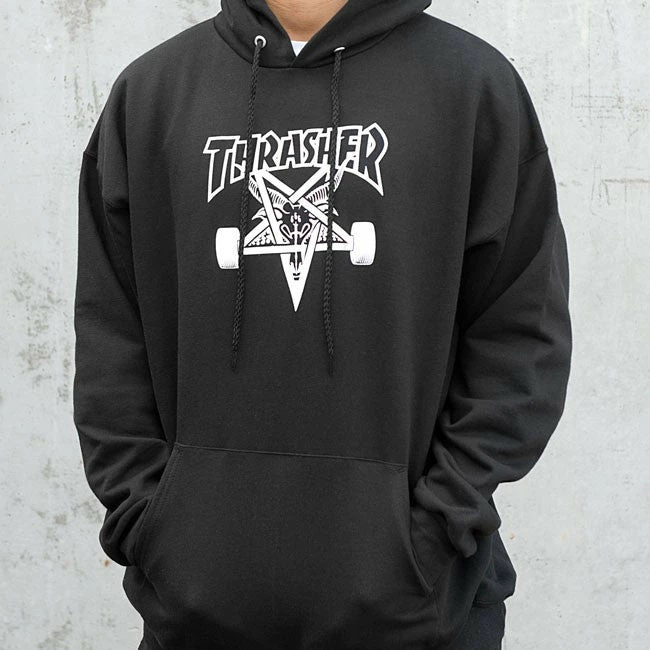 Heavyweight, 90% cotton 10% polyester hooded sweatshirt. Features the original dark & gnarly Skategoat graphic.